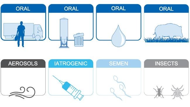 非洲猪瘟于1978年传入撒丁岛,作为隐秘性疾病,其被严重低估,使得该病在岛内迅速而广泛的扩散,在散养猪群、家庭农场、多数野猪群和传统农场中均存在。该病毒是通过来自西班牙的受污染食品传进来的,来自航空运输中的食物残渣经过人的手接触了家猪,使得病毒在撒丁岛迅速传播开来。人的行为,加上撒丁岛上非法散养猪、小规模家庭农场、野猪和薄弱的生物安全意识的共同效应,促进了非洲猪瘟病毒的传播。1980年代早期,实施了第一个非洲猪瘟净化方案,之后至少规划了5个需要大量经济投入的其他方案,但均未成功。