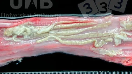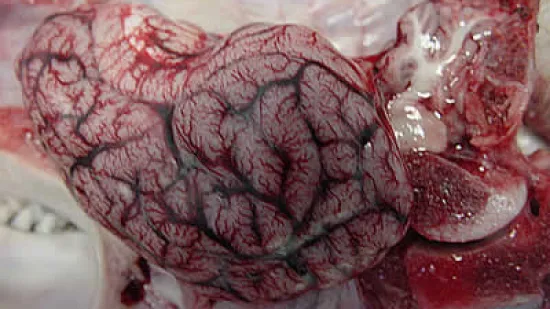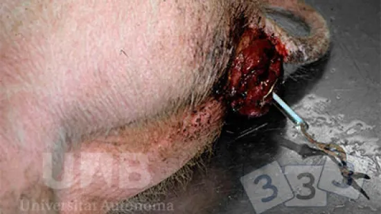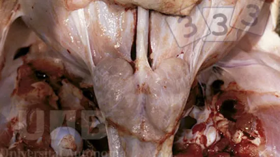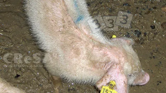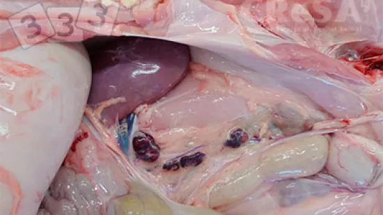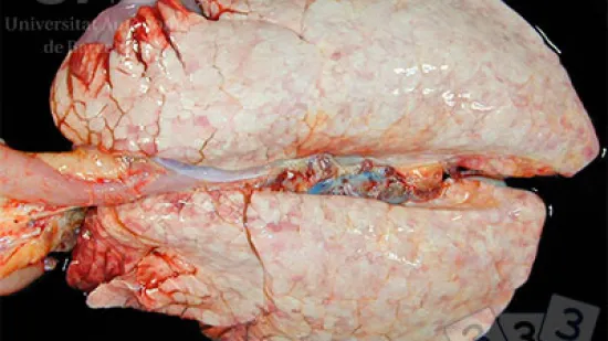 图片所示为一只仔猪的胸腺严重萎缩;实际上在心前区只能观察到残存的一点胸腺,已经进入了胸腔。下列哪种病原可以导致这种症状?