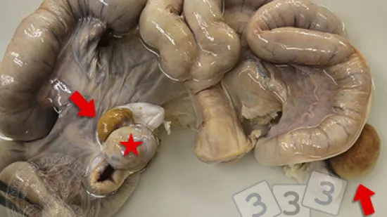 在此母猪的生殖系统,箭头指向的是?