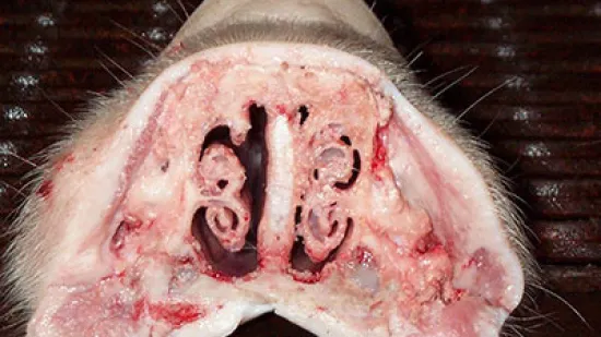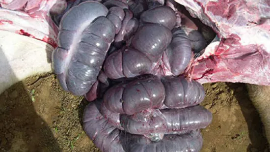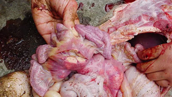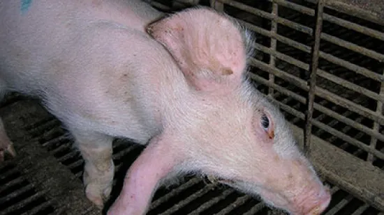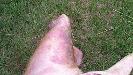 造成此户外饲养死亡猪的病变的原因,猪表现为脖子和喉咙肿胀?