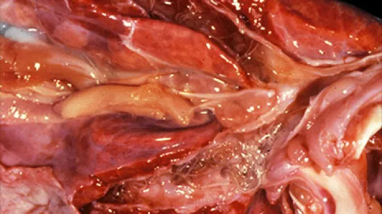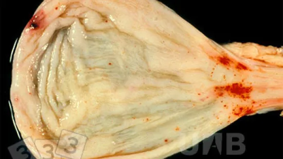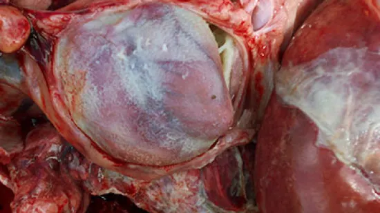 何种原因造成此7周龄仔猪心囊和肺部内膜增厚?