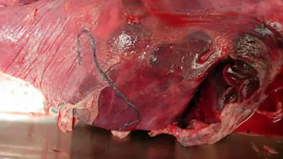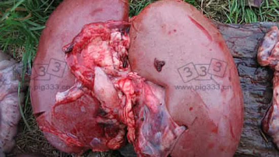 屠宰时发现如图所示病变,您认为造成病变的病因是什么?