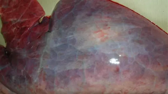 如图所示的肺炎导致了一头80kg重的猪死亡,您觉得病因是: