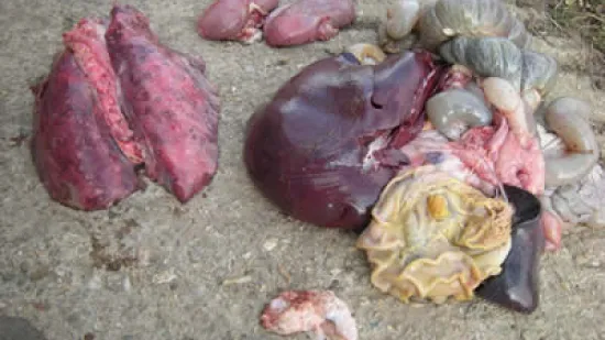 这只后备母猪的肺部病变是由于:
