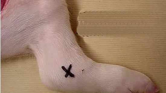 这只仔猪蹄部病变的病因为?
