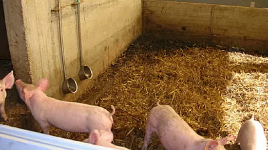 保育舍的地面铺盖垫草,每个猪圈设有两个饮水器。根据欧洲的猪群福利规定,每个猪圈可以容纳的最大仔猪数是?