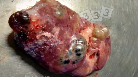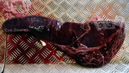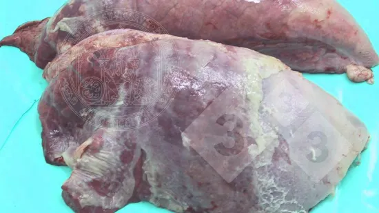 该动物出现呼吸问题。造成这些肺部病变的原因是什么?