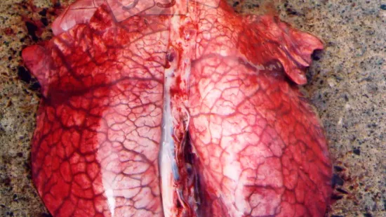 健康不良和缓慢的腹式呼吸的断奶仔猪数量增加。抗生素治疗效果差。死亡率为4-30%。造成这种病变的最可能原因是什么?