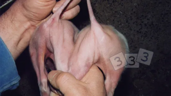 这只新生仔猪不能站立行走。造成这种疾病的最可能原因是什么?