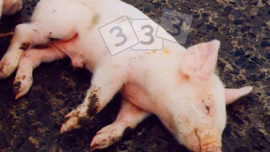 这头猪身体状况良好,贫血,突然死亡。胃内有深黑色内容物。