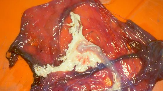 在正常分娩后的胎盘中有时会出现以下病变。它是什么,它的意义是什么?