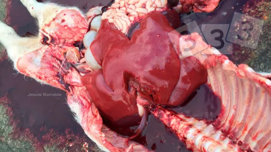 造成这头死亡怀孕晚期母猪肝脏病变的原因是什么?