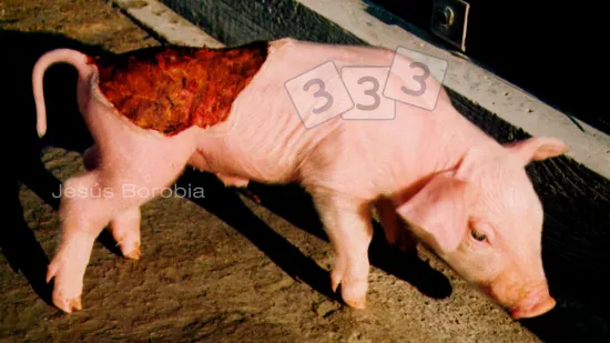 此6周龄仔猪皮肤上的不痒的病变是?