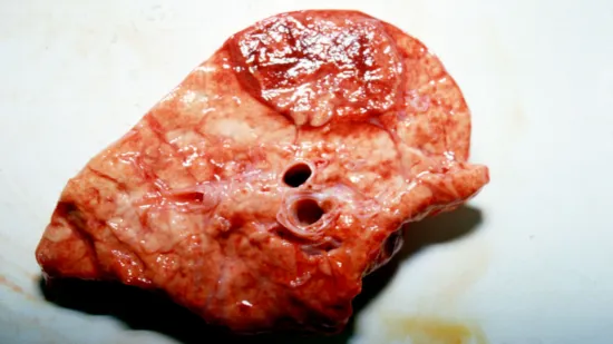 在种猪场每周屠宰猪的10%以上肺部出现这种病变的可能原因是什么?