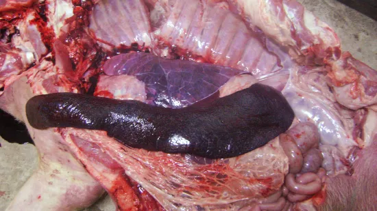 造成此8周龄断奶仔猪突然死亡的原因是?
